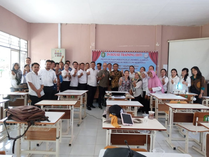 Dinas Pendidikan dan Kebudayaan Provinsi Kalimantan Barat mempunyai program di Tahun 2023 yaitu pelaksanaan In House Training (IHT) yang dilaksanakan dalam 3 tahap di masing - masing Satuan Pendidikan. SMK Negeri 1 Mempawah Hulu yang pada program ini melaksanakan In House Training (IHT) dengan materi Penyusunan Perangkat Pembelajaran Implementasi Kurikulum Merdeka yang dilaksanakan dari tanggal 13 - 16 September 2023. IHT ini dibuka secara resmi oleh Pengawas SMK Dinas Pendidikan dan Kebudayaan Provinsi Kalimantan Barat Bapak Ignasius Bowo Haryanto, S.Pd. Dalam kegiatan IHT ini, SMK Negeri 1 Mempawah Hulu memilih Narasumber / Fasilitator dari Guru Penggerak Kalimantan Barat yaitu Bapak Supriyanto, S.Si, M.Pd dan Bapak M. Haninul Fuad, M.Pd dari SMK Negeri 4 Pontianak. Kegiatan ini diharapkan dapat menambah pengetahuan Guru SMK Negeri 1 Mempawah Hulu dalam penyusunan perangkat pembelajaran implementasi kurikulum merdeka dan masing - masing Guru dapat membuat perangkat pembelajaran sesuai dengan kondisi di satuan pendidikan.